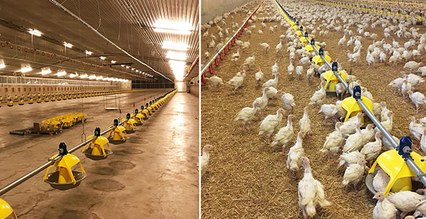 Germany is one of the top 3 countries in Europe when it comes to turkeys. Last year, they produced 465 metric tons of meat with 30 million turkeys per year. It is logical that our German distributor – Prüllage Systeme GmbH – sees great possibilities for the recently launched Roxell feeder pan for turkeys. In a division of Menslage/Artland, they installed a house with Titan feeder pans. The customer is a veterinarian known for his exceptional knowledge of turkeys. His initial experience with this innovative design was extremely positive.